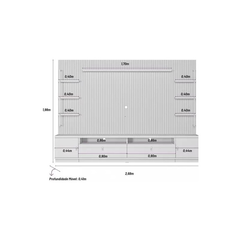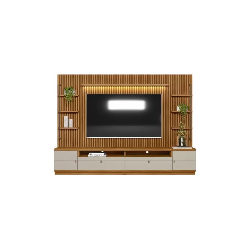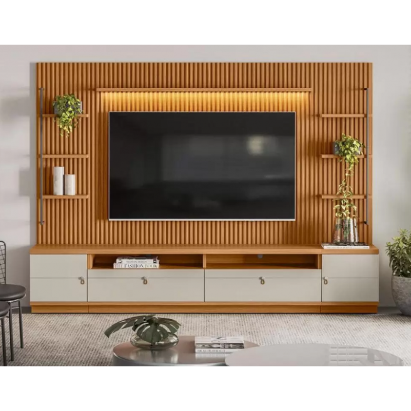 Estante Painel para TV 75 Polegadas 2 Portas 2 Gavetas Ripado
