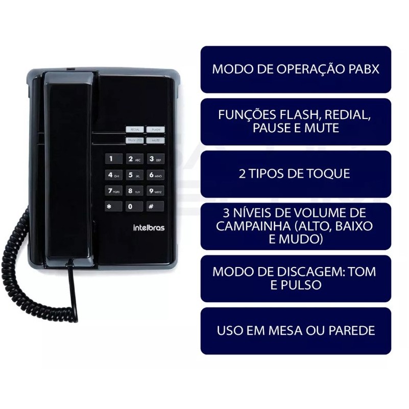 Telefone Fixo Intelbras LED 2 Toques Rediscagem