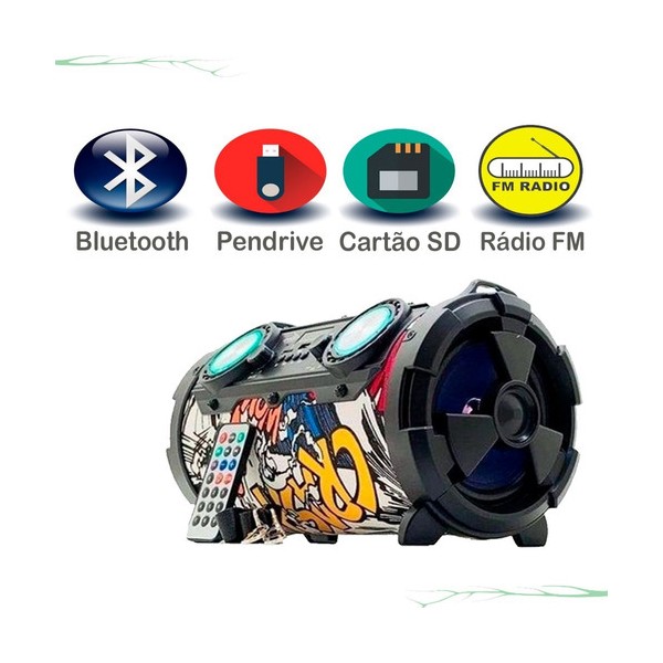 CAIXA DE SOM PORTATIL C/ BLUETOOTH LED E USB FM - BIVOLT - 30W