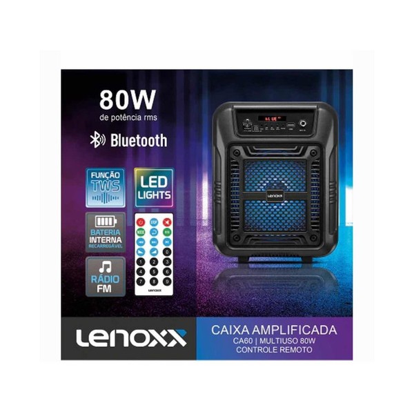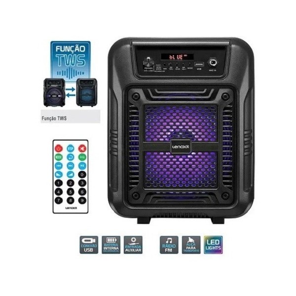 CAIXA DE SOM C/ BLUETOOTH E USB PRETA LENOXX 80W