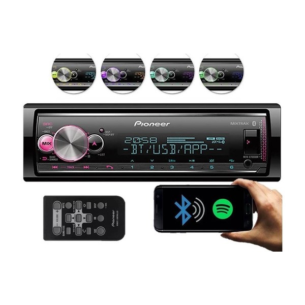 Com este dispositivo você poderá usar a sua voz para procurar aquela música que você gosta tanto ou encontrar sua estação de rádio favorita. Mais potência e melhor qualidade, um equalizador de som é a ferramenta que amplifica e atenua certas frequências num sinal de áudio. Ou seja, ajusta a qualidade do som que você vai ouvir. Graças a esta ferramenta, integrada no seu aparelho, você obtém a melhor experiência ao reproduzir a sua música favorita. MP3 Player Automotivo Pioneer 1 Din com Bluetooth Interface para Android e iOS USB AUX Rádio FM e AM WMA Spotify Mixtrax Flashing Light Aplicativo Smart Sync
