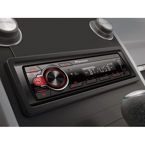 O som automotivo da Pioneer chegou com design essencial para permitir que você desfrute de chamadas viva-voz e Streaming de áudio no carro, através do Bluetooth embutido com microfone interno. Assim você tem muito mais praticidade pra atender as suas ligações e escutar suas playlists favoritas no Spotify! Além disso, tem tela LCD de 8 caracteres, entradas USB e auxiliar, rádio AM/FM e reproduz WMA, MP3, WAV e FLAC. Busque e selecione com segurança artistas, álbuns e listas de reprodução usando os botões no aparelho. Esse modelo não tem entrada para CD/DVD.
