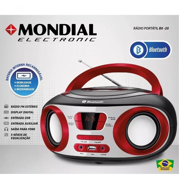 Radio Bombox Portatil Mondial Bivolt 8w Rms Com Usb Aux Preto