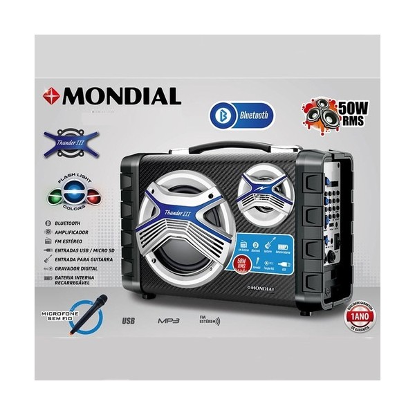 Caixa de Som Mondial 50w Bluetooth Usb Fm e Microfone