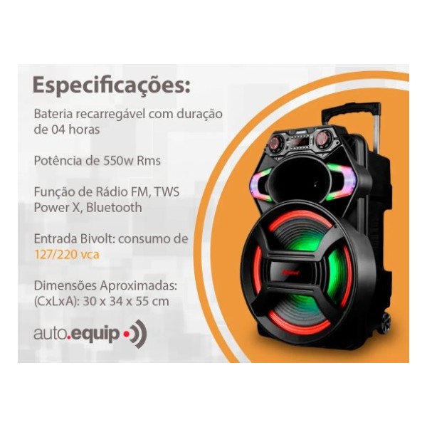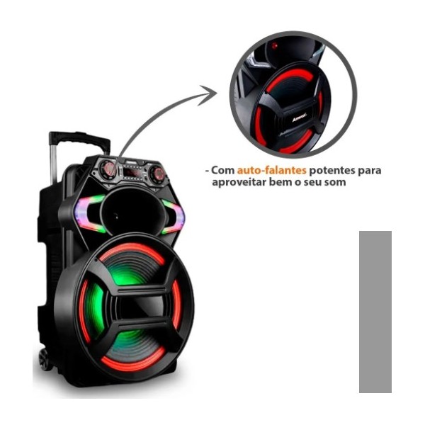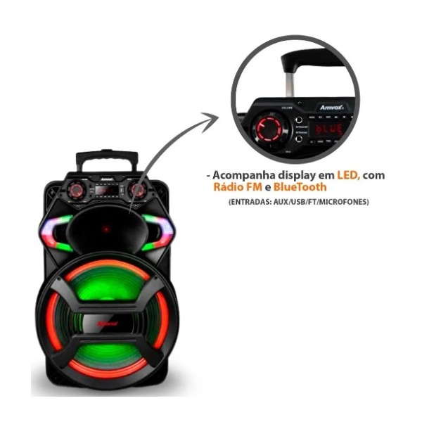 CAIXA SOM AMPLIFICADA AMVOX 550W C/ BLUETOOTH KARAOKE SD FM USB