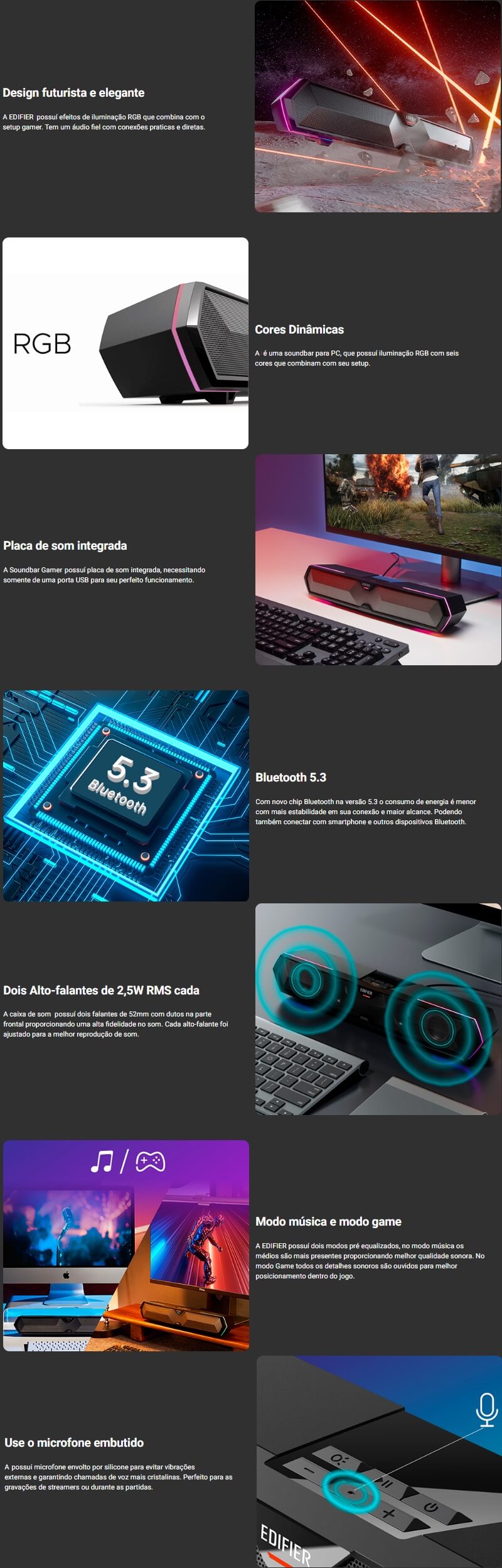 CAIXA DE SOM BLUETOOTH EDIFIER USB 5W C/ RGB MICROFONE - PRETA