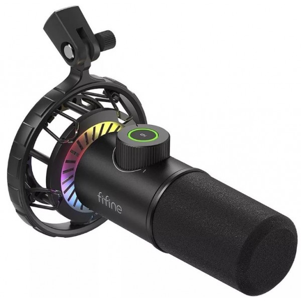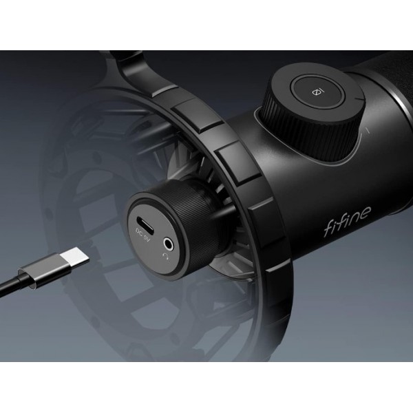 MICROFONE DINAMICO PODCAST STUDIO USB FIFINE UNIDIORECIONAL C/ CABO 2M - PRETO