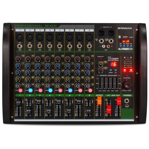 MESA DE SOM PHANTOM 8 CANAIS BLUETOOTH RADIO C/ 16 EFEITOS BIVOLT