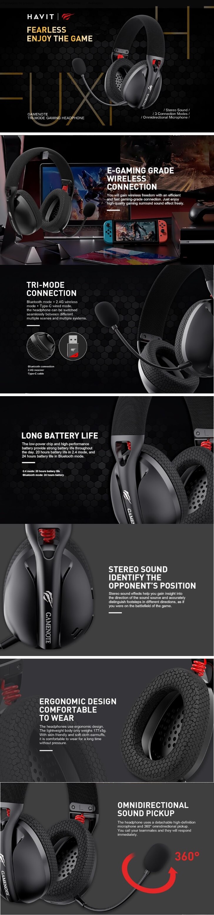 FONE DE OUVIDO HEADSET HAVIT 40MM BLUETOOTH C/ MICROFONE DIRECIONAL - PRETO