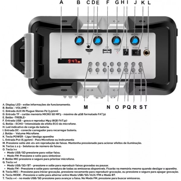 Caixa de Som Lennox 120W USB Karaoke Preta Bivolt