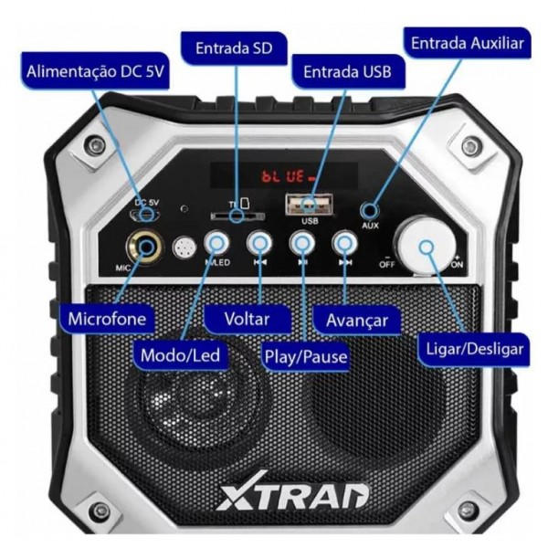 Caixa de Som Bluetooth 100W Xtrad Microfone USB