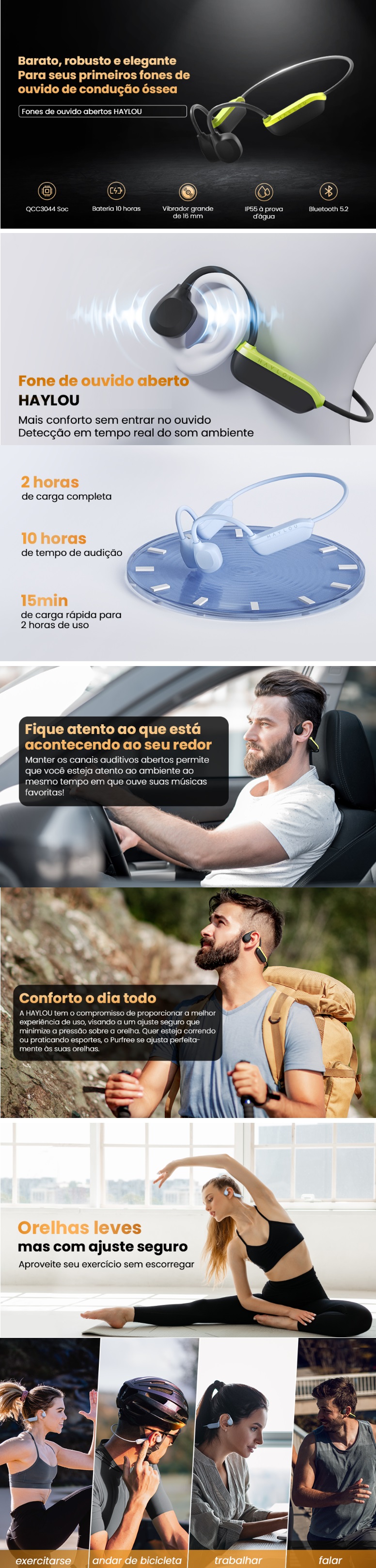 Fone de Ouvido Esportivo Resistente a agua Haylou Bluetooth