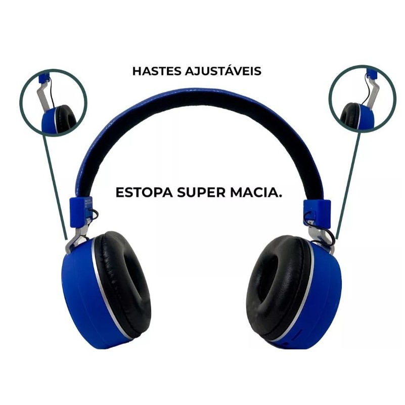 Fone de Ouvido Bluetooth Suporte SD Cabo P2 FM