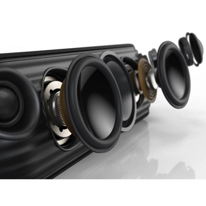 A certificação áudio de alta resolução assegura que a sua música soe da forma que o artista quer que seja ouvida, enquanto a tecnologia aptX da Qualcomm preserva a qualidade do som quando é transmitida via Bluetooth. possúi tweeters de 40kHz de ultra-alta frequência, woofers de neodímio, e radiadores passivos produzem 30W de som rico e são posicionados num ângulo de 15° para optimizar a dispersão do som A nossa tecnologia única de bass-boosting proporciona melhoramentos dos graves em tempo real para graves que caem cada vez mais fundo a cada batida.