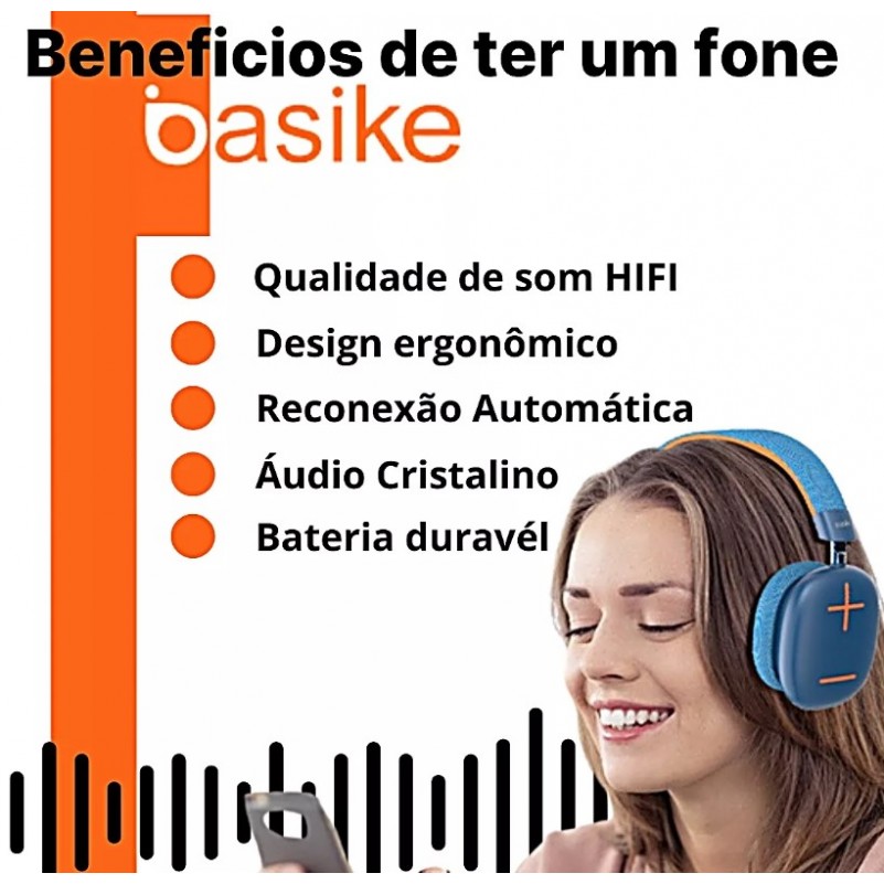Fone de Ouvido Over ear Bluetooth Basike 100db com Microfone