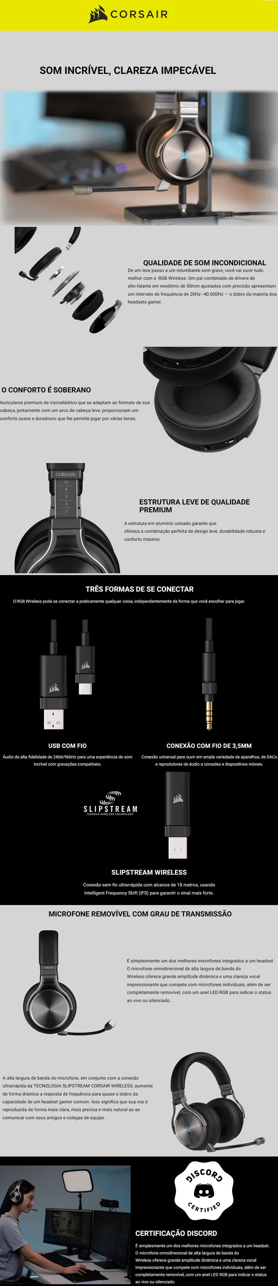 Fone de Ouvido Gamer Wireless RGB Corsair 109db Surround 7.1 Preto