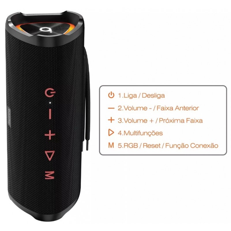 Caixa de Som Portatil Basike Bluetooth Led RGB 35W Resistente a Agua