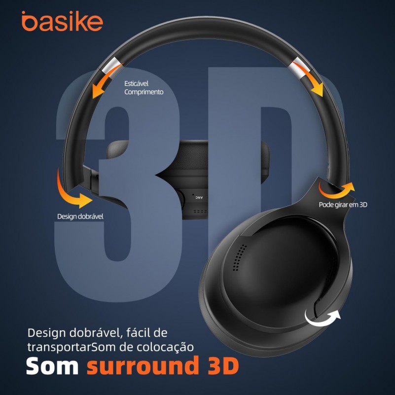 Fone de Ouvido Bluetooth Basike 114db Surround 3D com Microfone