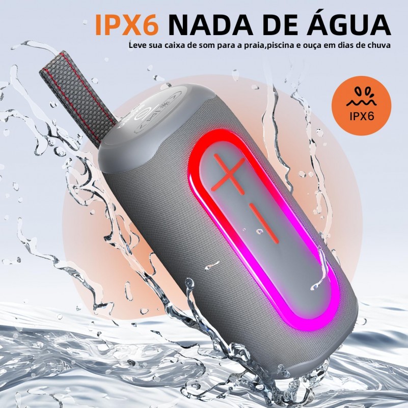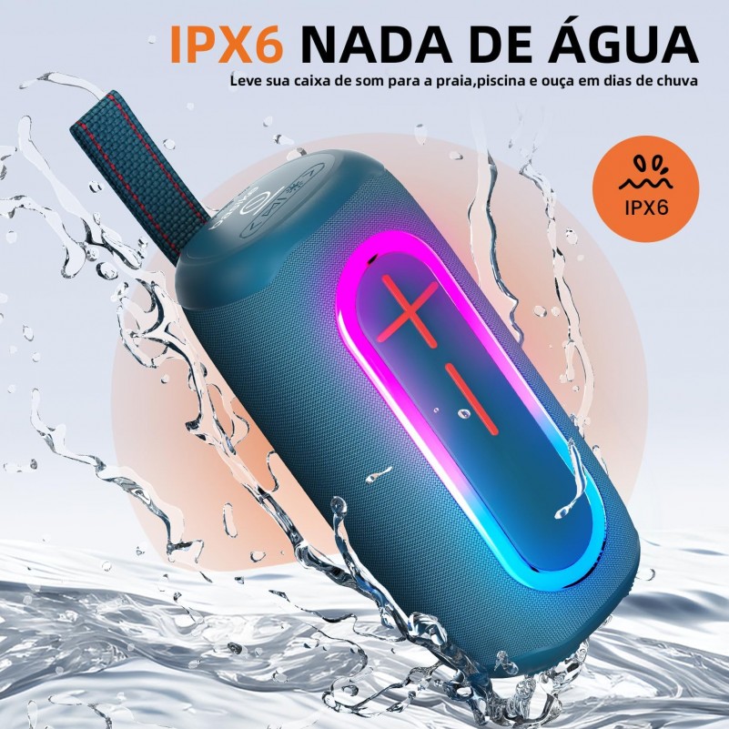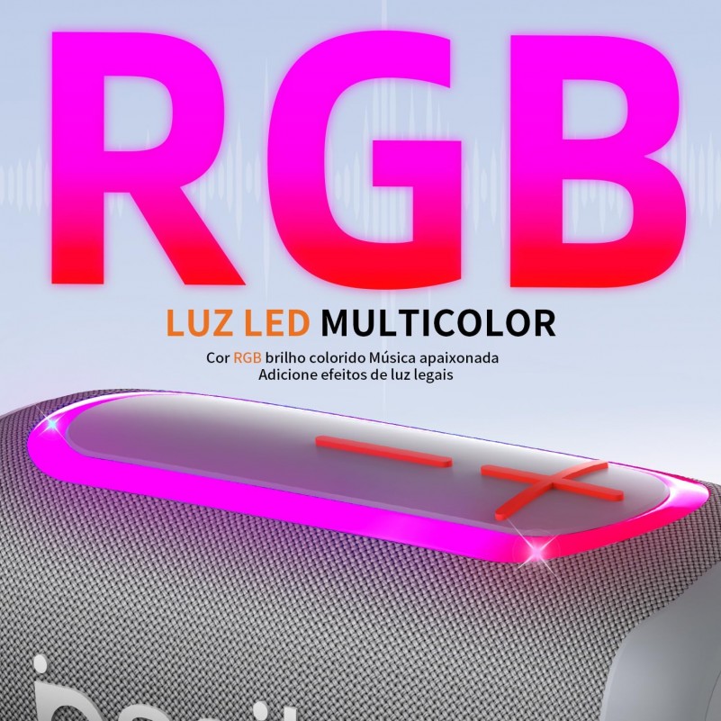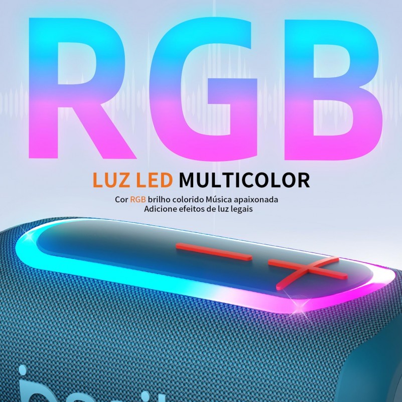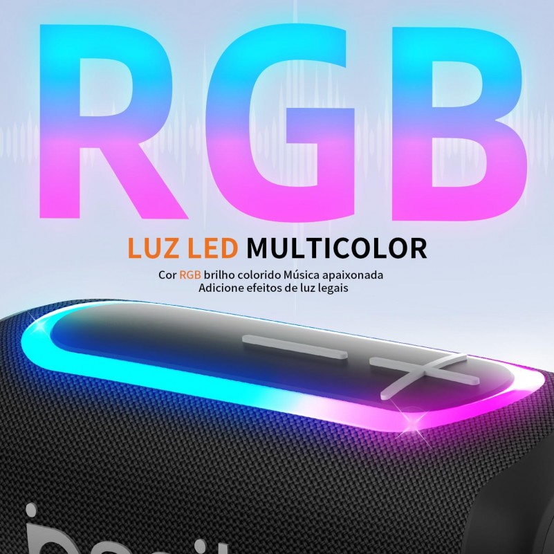 Caixa de Som Portatil 20W Basike RGB Bluetooth A prova dAgua