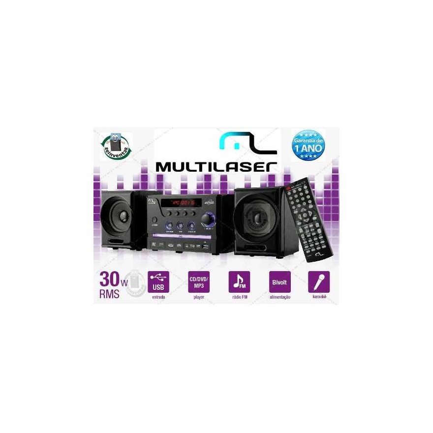 MINI SYSTEM MULTILASER DVD Player, Rádio FM, Karaokê e USB