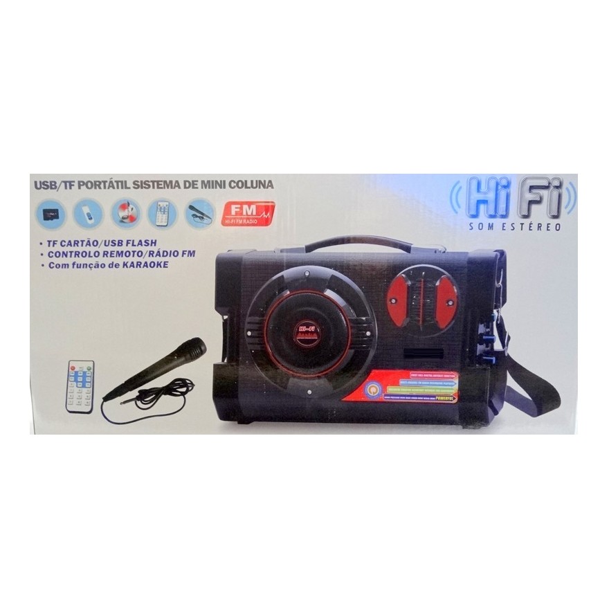MICRO SYSTEM CAIXA SOM PORTÁTIL KARAOKÊ MP3 USB SD CARTÃO 120w