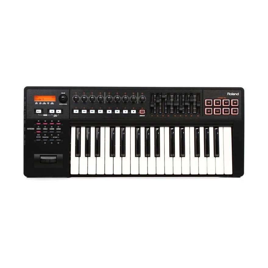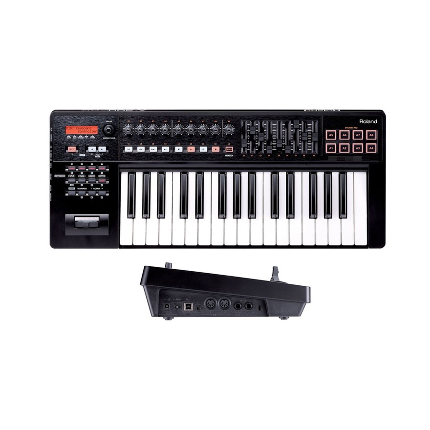 Controlador MIDI portátil com 32 teclas com sensibilidade, com mais de 40 controles assinaláveis, entre pads, sliders, kbnos e botões. Entrada para dois pedais. Conectores MIDI IN/OUT e USB-. O teclado é compatível com computadores via porta USB e teclados ou módulos de som que tenham conexão MIDI IN. Possui alavanca de bender, mas sua altura de modulação deve ser especificada no módulo de som que será utilizado junto ao controlador. Alimentação via USB ou Fonte PSB-120 (vendida separadamente). Se você está procurando um teclado controlador para usar em estúdios, palcos ou outros lugares inspiradores, atente-se para o no Roland. Combinando o melhor da engenharia desenvolvida pela Roland com a legendária facilidade de uso criada pela Cakewalk, o equipamento possui todas as características necessárias para você obter o máximo de sua música e de suas produções. O Roland é perfeito para ser utilizado com uma grande variedade de softwares tanto no Mac quanto no PC, incluindo o Ableton Live, o Cubase, o FL Studio, o Garage Band, o Logic, o Nuendo, o Pro Tools e o Sonar. O melhor de tudo é que esse produto é muito fácil de configurar: basta plugar um cabo USB para fazer música a qualquer momento. Quando você utiliza o Roland, certamente está aproveitando os benefícios de mais de 30 anos de experiências adquiridos pela Roland no desenvolvimento de teclados. Um mecanismo de tecla superior, por exemplo, oferece aftertouch e aumento da sensibilidade para uma ampla gama de dinâmicas em sua performance. Além disso, foram realizadas melhorias para eliminar uma trepidação vertical e para reduzir o baixo ruído mecânicos das teclas. O equipamento também conta com sensibilidade programável com diferentes curvas para adequar-se ao estilo do usuário. Por isso, não importa qual o seu nível de habilidade: você vai apreciar a sensação de tocar um instrumento de qualidade quando usar um Roland.