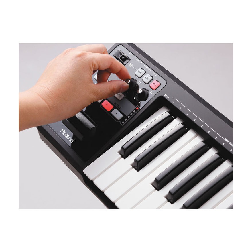 Não há escassez de teclados controladores portáteis MIDI no mercado, mas muitas vezes equivalente a portabilidade é ação de tecla. Com o novo teclado, o jogo mudou - esse leve, compacto controlador premium, com teclas de tamanho padrão, o que eleva a sua classe. Disponível em acabamentos branco pérola e em preto, o teclado é um sonho para músicos que procuram um controlador MIDI simples, fácil de usar com qualidade profissional na sensação ao tocar. O Roland tem teclas de forma arredondada para uma melhor reação ao toque do musico e glissandos mais confortável. Outras melhorias foram feitas para reduzir o já baixo ruído mecânico e eliminar a trepidação vertical. Todos esses recursos se somam a um teclado que mesmo os profissionais mais exigentes vão apreciar. Adicione coloração ao seu som e emoção para o sua performance agitando as mãos sobre o invisível D-BEAM. O Roland pode atribuir todos os seus controladores automaticamente para a plena utilização de um módulo de som externo Super NATURAL, como a INTEGRA-7. É também um excelente segundo teclado para controlar sintetizadores que têm os sons Super NATURAL interno, tais como o JUPITER-80 e JUPITER-50.