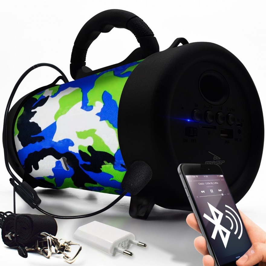 Procurando uma caixa de som para levar na praia, sitio, churrasco ou para deixar no quarto? Apresento a caixa de som com autonomia de ate 4hs. Possui bluetooth com um som incrivel e design compacto. Muito leve e totalmente portatil! Além disso, aceita USB, micro USB e cartao micro SD, bem como a possibilidade de usar cabo auxiliar P2 para se conectar a outros dispositivos como um notebook ou desktop. Possui sistema multifuncional com radio FM, onde voce podera sintonizar as suas radios preferidas e reproduzir em um som alto e nitido por meio do alto-falantes de 4polegadas. A escolha perfeita para todas ocasioes.