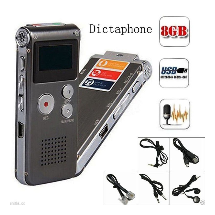Gravador de voz digital, com 8GB de memória interna, permite a gravação de aúdio por até 20 horas, alimentado por uma bateria interna de Íon de Lítio. O gravador vem com diversos acessórios, listados abaixo. Equipamento de fácil operação. Ele grava sons em estéreo e em arquivos de formatos WMA e MP3 e que apresenta uma grande capacidade de bateria recarregável, gravando os arquivos com proteção. Além disso, apresenta fácil uso já que apresenta apenas um botão para começar e parar de gravar. Esse Gravador de Voz Digital também pode ser usado para trocar músicas em arquivo MP3. Possui 03 modos de gravação, áudios, conversas telefônicas e via microfone extra.