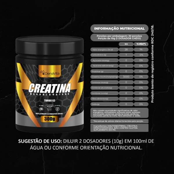 CREATINA MONOHIDRATADA TURBO 300G DOSE 5G