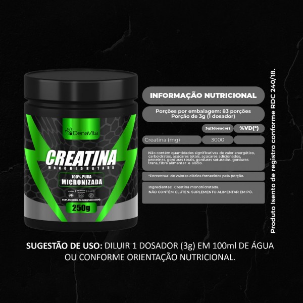 CREATINA PURA MONOHIDRATADA E MICRONIZADA TURBO 250G DOSE 3G