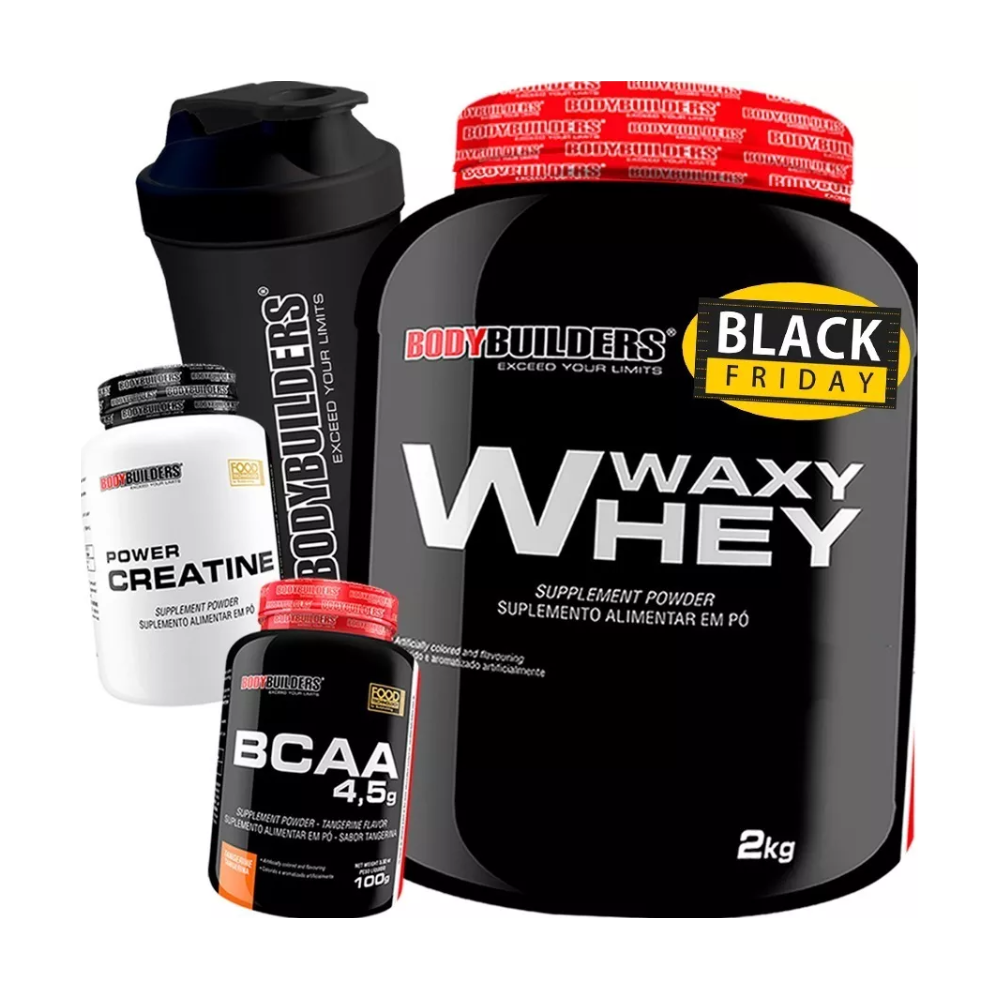 Kit Suplementos Whey Protein 2Kg BCAA Creatina e Coqueteleira 600ml