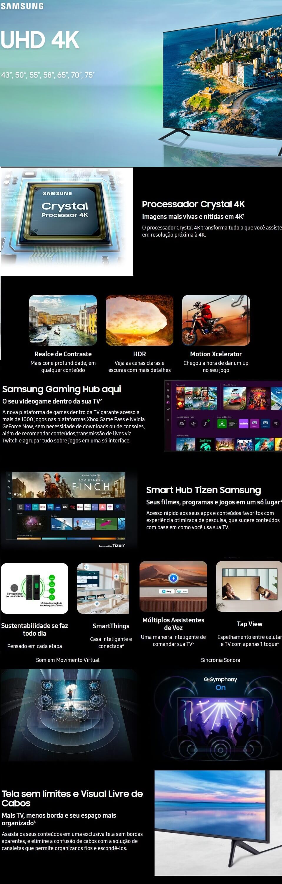 SMART TV CRYSTAL 75 4K SAMSUNG 60HZ WIFI BLUETOOTH C/ GAMING HUB