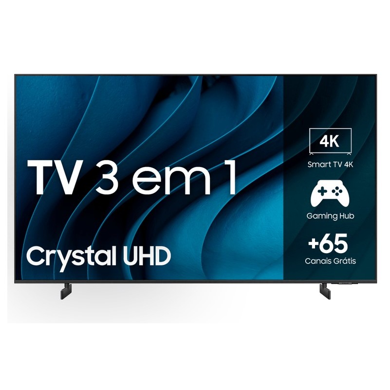 Com a experiência de som 3D do Som em Movimento Virtual você fica totalmente imerso no áudio dos seus filmes e séries, como se estivesse no meio da ação. E se você tiver um Soundbar Samsung*, tudo fica melhor! Isso porque a sincronia sonora soma o som do seu aparelho soundbar com os alto-falantes da TV, para trabalharem juntos em uma experiência sonora única e incomparável. E ele também pode ser adaptativo, viu? Otimizado no seu espaço, de acordo com o ambiente da sua casa, não importando se a TV estiver na parede ou no rack. Tudo isso com cliques simples e fáceis na palma da sua mão, através de um controle remoto moderno e ecológico, o SolarCell, que é feito de quase um terço de plástico reciclável e é recarregável por energia solar, pela luz de ambientes internos, por USB e, agora, também por sinal de radiofrequência. Tudo para evitar o desperdício de milhões de pilhas AAA ao longo dos anos. Mas o que seria dessa Smart TV sem um processador topo de linha, que desse vazão a todo o potencial dela? Pois é. Por isso, a conta com o processador Crystal 4K, que transforma tudo o que você assiste em resolução próxima à 4K.