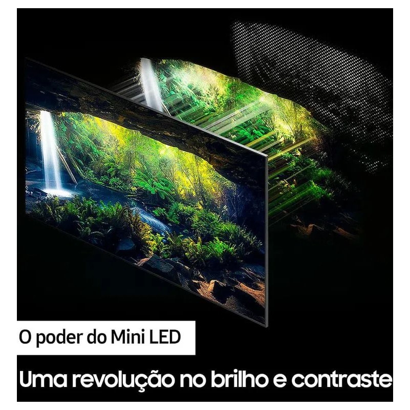 A Neo QLED revoluciona os padrões de imagem, substituindo cada LED convencional por 40 Mini LEDs exclusivos Samsung. O resultado é um preto muito mais preciso e um brilho perfeito, trazendo muito mais realismo ao conteúdo assistido. Processador exclusivo da Samsung, que proporciona a melhor experiência de visualização, ao realizar o upscaling de qualquer conteúdo para resolução próxima a 4K conforme a cena. Aproveite a imersão de sonora que o Dolby Atmos proporciona e a percepção do deslocamento do som dos objetos em cena com o Som em Movimento. Além disso, com a Sincronia Sonora, o som da Soundbar é somado aos alto-falantes da TV e, diferente das TVs convencionais, ambos trabalham em conjunto para uma experiência sonora única e incomparável.