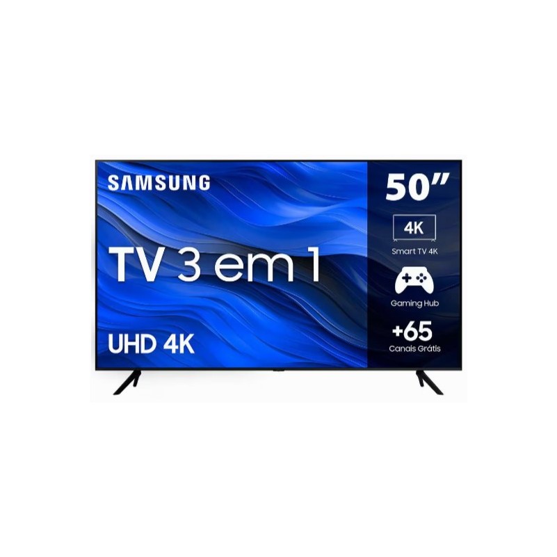 Prepare-se para experienciar um novo nível de imersão televisiva com a TV Samsung UHD. Uma maneira completamente inovadora de assistir aos seus programas favoritos, com recursos visuais, estruturais e tecnológicos que trarão possibilidades infinitas para o seu entretenimento. Um televisor com design marcante e contemporâneo, uma tela fina que se integra aos ambientes, sem bordas aparentes para destacar apenas o que você quer ver. Outro componente estrutural são as canaletas para organizar e esconder os fios, tornando seu ambiente mais organizado e visualmente limpo. Mas e a imagem? O que a Samsung prepara para seu consumidor obter o melhor na qualidade de reprodução audiovisual? Três palavras: Processador Crystal 4K. Além da certificação já conhecida de um produto 4K que todas as TVs Samsung com esta denominação levam, com a capacidade de reprodução de todas as cores em cada pixel, com seu processador, transforma tudo o que você assiste em resolução próxima à 4K, deixando as imagens mais vivas e nítidas. A tecnologia não poderia ficar de lado. O televisor conta com diversos recursos para você desfrutar de atividades sem trocar de dispositivo. Ele possui múltiplos assistentes de voz, como o Bixby, Alexa, para que você possa controlar sua TV por comandos de voz; têm controle remoto único que reconhece todos os aparelhos compatíveis conectados à TV; espelha a tela do seu smartphone apenas encostando-o ao televisor, e muito mais! Além disso, você vai poder contar com o Samsung Gaming Hub, o seu videogame dentro da TV. Essa nova plataforma de games dentro da TV garante acesso a mais de 1000 jogos nas plataformas Xbox Game Pass e Nvidia GeForce Now, sem necessidade de downloads ou de consoles, além de recomendar conteúdos, transmissão de lives via Twitch e agrupar tudo sobre jogos em uma só interface.