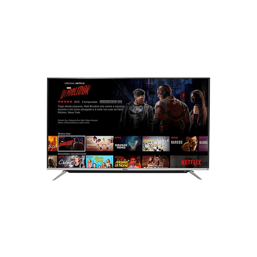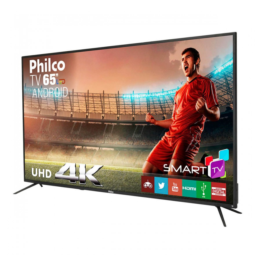 Televisor com tela de 65 polegadas em resolução 4K (Ultra HD). Tecnologia Smart Android com sistema Google permitindo acesso aos aplicativos presentes na GooglePlay como Netflix, Youtube, Facebook, entre outros, além de possuir o Chromecast (Comunicação sem fios entre dispositivos móveis ). A TV também possui o soundbar que traz a sua TV um som da mais alta qualidade. Sinta a emoção de assistir nunca mais será a mesma. Você vai viver experiências emocionantes e inesquecíveis! Sabe aquelas suas cenas favoritas? Esta TV é É ultra-HD (4K), as imagens vão ficar ainda mais emocionantes. Além disso, ela é smart (com wireless integrado) e Google TV, e também é Android, assim você pode baixar os aplicativos favoritos de toda a família diretamente do aparelho. Aproveite o máximo dos seus momentos de lazer assistindo seu filme ou séries favoritos com a Smart TV LED 65Pol Ultra HD 4K com 3 HDMI e 2 USB Preta com Conversor Digital Integrado, da Philco. Os grandes diferenciais do produto ficam por conta de sua resolução 4K UHD que garante que você não perca nenhum detalhe de seu programa favorito e o conversor digital integrado. Quando não temos nada para fazer, geralmente ligamos a televisão para nos entretermos. Por isso, não escolha qualquer televisão. Escolha aquela que oferece a melhor imagem e som para você reunir seus amigos e familiares para aproveitarem o seu cinema em casa. Então, escolha Philips, que trouxe esta smart TV de LED de 65 polegadas. Uma telona impressionante para você se apaixonar! A smart TV da Philips é incrível. Além da enorme tela, que faz qualquer um se apaixonar, ela possui imagem de qualidade Full UHD, 4K, ou seja, sem riscos, sem granulados, só qualidade. Além disso, ela possui entradas HDMI e USB, conexão wi-fi e ainda possui conversor integrado, para que você tenha sempre uma televisão digital, da forma como você merece. Não perca a chance e adquira a sua!