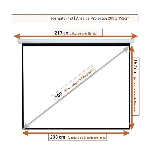 TELA DE PROJEÇÃO RETRATIL MANUAL 203 X 152CM
