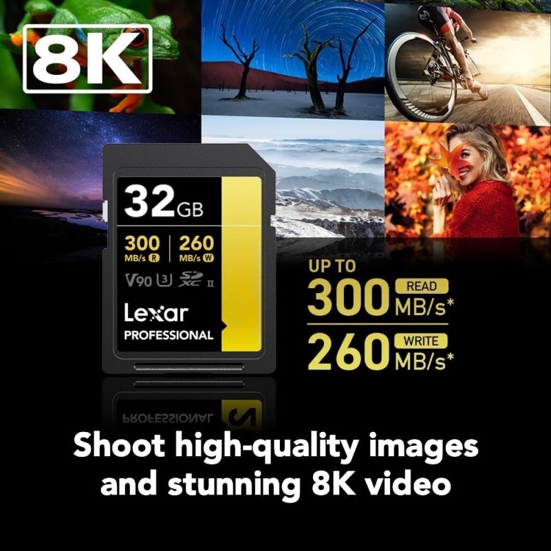 Cartao de Memoria SD 32GB Lexar 4K Leitura 300Mbs Gravaçao 260Mbs