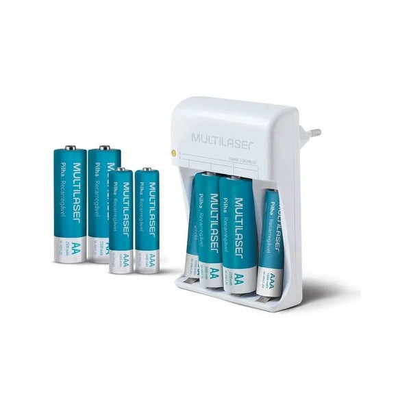 KIT CARREGADOR MULTILASER C/ 8 PILHAS RECARREGAVEIS - BIVOLT