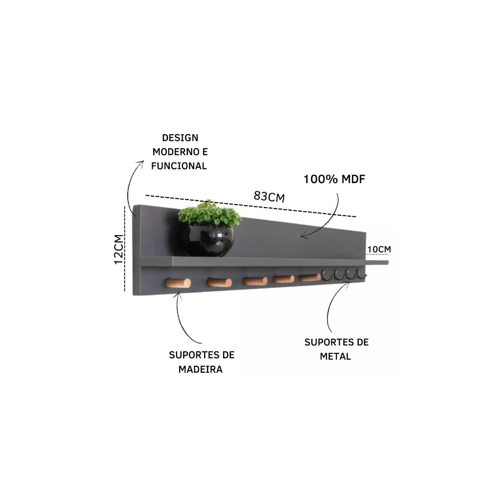 KIT MOVEL SAPATEIRA C/ 2 PRATELEIRAS E BANCO CABIDEIRO HALL