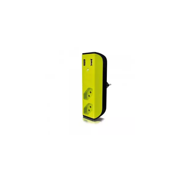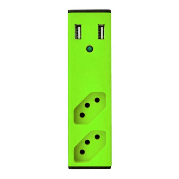 CARREGADOR 2 PORTAS USB C/ FILTRO DE LINHA 2 TOMADAS TRIPOLAR - VERDE