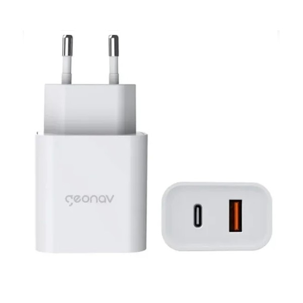 CARREGADOR UNIVERSAL ULTRA RAPIDO USB 3.0/USB-C 20W GEONAV - BRANCA