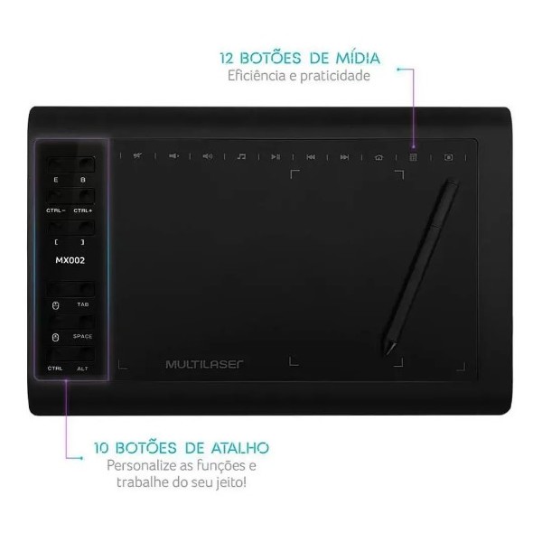 Crie, desenhe e edite com total liberdade e riqueza de detalhes, efeitos e cores com a Mesa Digitalizadora. Perfeita para desenhos digitais, pinturas, ilustrações, edição de imagem ou de vídeo, sketching e tantas outras funções. Expresse suas ideias com movimentos naturais e total fluidez em sua ampla área de trabalho de 10 Pol. Sinta a experiência de desenhar na superfície desenvolvida com tecnologia que simula a sensação de escrever no papel. Com tela de textura suave em estilos e design, é tão atraente quanto o seu alto desempenho. Para máxima eficiência e praticidade, possui 12 botões de atalho e 10 teclas multimídia com funções de uso frequente.
