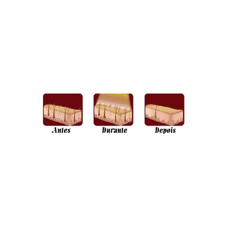 Elimina até 90% dos pelos em 8 tratamentos, e com uso contínuo, eliminação permanente dos pelos