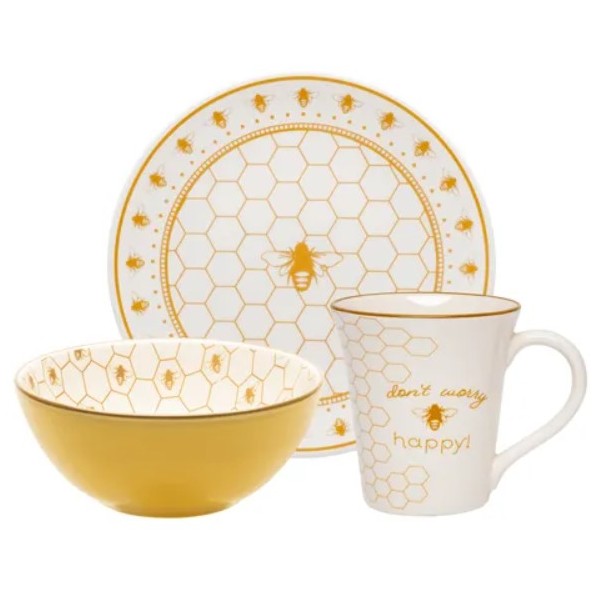 KIT 3 PC PRATO TIGELA E TULIPA OXFORD EM CERAMICA