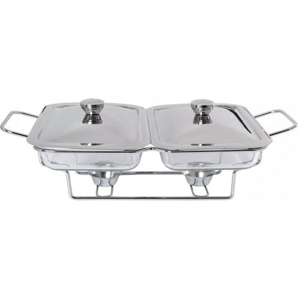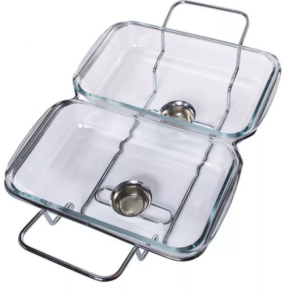RECHAUD RETANGULAR DUPLO EM VIDRO 1.2L C/ ALÇAS INOX