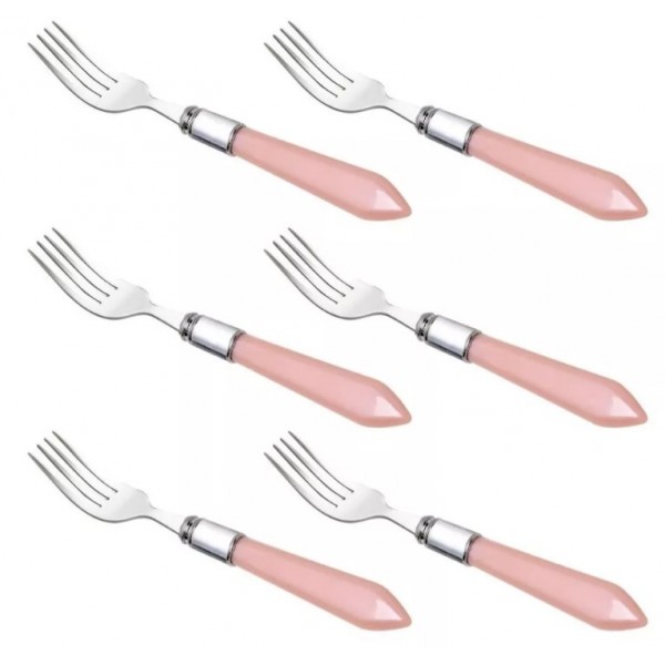 KIT 6 GARFOS DE MESA INOX C/ CABO DE PLASTICO - LUXX PINK
