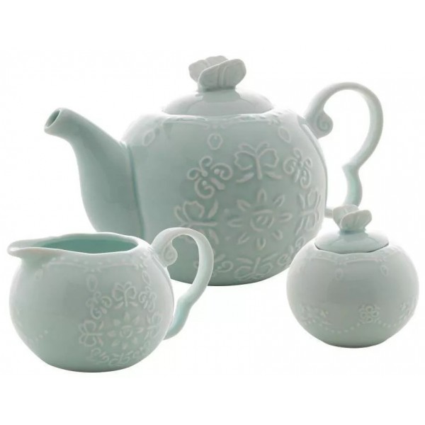 JOGO CAFE DA MANHA 3 Pc WOLFF PORCELANA C/ CHALEIRA AÇUCAREIRA E LEITEIRA
