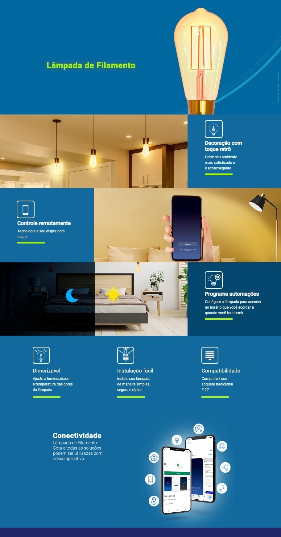 LAMPADA DE FILAMENTO GOTA 5.5W RETRO E27 C/ ASSISTANTE VIRTUAL